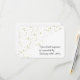 Esta tarjeta de respuesta boda presenta un dorado sobre estrellas blancas y fondo de confeti que cubre más de la mitad del frente. Su texto personalizado está en negro elegante. La parte posterior de la tarjeta es blanca con el texto, y es fácil que el encuestado marque. Apropiado para cualquier época o temporada del año. Asegúrese de ver las invitaciones coincidentes y otros productos de boda en nuestra tienda.
