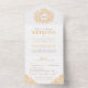 Invitación de boda todo en uno con arte botánico de hoja creciente dibujada a mano en naranja. Personalice esta invitación de boda de respuesta desmontable con los detalles de su ceremonia de boda y agregue sus opciones de comida a sus respuestas desmontables. Sencillo diseño de hoja que rodea las iniciales de su monograma en naranja y marrón sobre blanco. Otros colores y artículos de boda a juego disponibles. © Dibujo y diseño original de hoja por Sarah Trett para www.mylittleedenweddings.com en Zazzle.