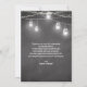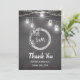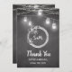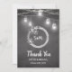Tarjeta de agradecimiento de Boda blanco negro con Mason Jar, String Lights, Floral Wreath, Couple Initials.