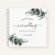 Un elegante fondo blanco decorado con aceitunas y olivos. Personalice y agregue sus nombres y fecha de boda.