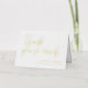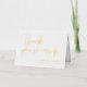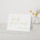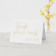Boda plegado romántico tarjeta de agradecimiento sin foto con fuentes de Relieve metalizado dorado. Muchas gracias en un guión de bonito y sus nombres y fecha boda en elegantes letras doradas.