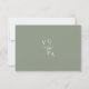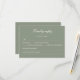 Tarjeta de RSVP de boda boho verde salvia moderna con un diseño simple y elegante. Cuenta con un monograma en la parte posterior.