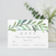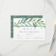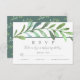 Una elegante tarjeta de respuesta botánica boda bordeada por vides acuáticas de color azul-verde. El color de fondo se muestra en blanco, pero se puede personalizar para que coincida con el tema boda.