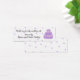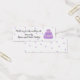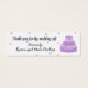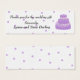 Una forma bonito de agradecer el regalo del boda. Un fondo blanco con puntos púrpura. Un pastel de bonito morado con glaseado blanco y flores blancas. Personalizar como se desee.