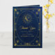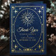 Añade un toque mágico a tu boda con esta tarjeta de bienvenida de Relieve metalizado de Boda de tarjetas celestes de Tarot azules! Esta invitación presenta un diseño inspirado en el tarot en Relieve metalizado real con un elegante marco oval, un sol radiante y una luna contra un fondo azul de ensueño. En la parte trasera hay un lugar para la foto. ¡Perfecto para una celebración tan encantadora como la tuya!