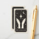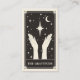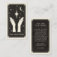 Esta tarjeta de agradecimiento de Boho boda presenta un diseño estilo tarjeta de tarot en una paleta de color negro y crema. El ilustracion muestra dos manos en un gesto de gratitud. El fondo tiene una luna y estrellas brillantes. Esto sería perfecto para cualquiera que tuviera un boda celeste, mágico o con temática de Estrella o para alguien con una estética brujera que fuera por un tema de palmistería o adivinanzas.