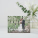 Nuestras tarjetas postales de agradecimiento a los bodas son la manera perfecta de expresar gratitud a sus invitados mientras muestran su foto favorita de los bodas. El diseño exclusivo de las letras a mano añade un toque personal al diseño moderno y bonito de las tarjetas de fotos. Estas postales, elaboradas a partir de cartón de alta calidad, tienen un ambiente lujoso y serán apreciadas por sus huéspedes como un regalo de su día especial. La opción de foto de personalizable le permite elegir su foto boda favorita y añadir un toque personal a la tarjeta. Con un amplio espacio para su mensaje de agradecimiento, estas postales son la manera perfecta de mostrar a sus invitados cuánto significó su presencia en su día de boda. Ya sea que optes por una foto clásica en blanco y negro o una foto vibrante y colorida, nuestras tarjetas postales de agradecimiento boda son una manera elegante y elegante de agradecerle.