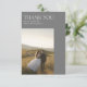 Tarjeta de agradecimiento sencilla y clásica con foto boda. Presenta un tipo de letra moderno que incluye nombres y fechas en un fondo gris fósil. Un mensaje sincero se centra en el reverso. El color del texto y del fondo es completamente cambiable.