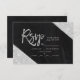 Tipografía de pizarra de purpurina plateado boda Rsvp, tipografía plateada sobre el bloque de color purpurina de pizarra negra de plata y franjas geométricas falsas moda rsvp , perfecto para una boda elegante,