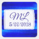 Pegatinas boda Date Bride y Groom con un fondo azul playa.