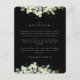Una tarjeta de recepción de boda negra con sobre que presenta rastros de bayas de nieve y eucalipto pintados a mano en la parte frontal y una corona en la parte posterior de la tarjeta. Todo el texto es totalmente editable y los puntos dispersos en la parte delantera y trasera se pueden eliminar antes de realizar el pedido si lo prefiere. Esta tarjeta está disponible con diseños botánicos alternativos, en formato apaisado y en diferentes colores. Por favor, revise la Colección en mi tienda para ver todas las opciones y artículos coordinados.