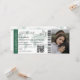 boleto boda de pases de embarque verde esmeralda, foto de la pareja comprometida, un avión con un rastro de lazo y un patrón de fecha fácilmente ajustable. Recuerde actualizar el texto de la parte posterior del monograma.