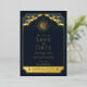 Añade un toque de magia celeste a tu gran día con este Relieve metalizado de tarjetas Sun y Moon Tarot Boda Salven las fechas! Estos bodas, salven las fechas, presentan un diseño inspirado en el tarot con un sol radiante, luna, estrellas y nubes en Relieve metalizado oro real contra un misterioso fondo azul marino. Perfecto para una historia de amor tan encantadora como la tuya. Artículos coincidentes en nuestra tienda para un tema fiesta completo.