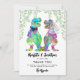 Una divertida y colorida boda con tema de dinosaurio agradecimiento a los invitados por ser increíbles con esta divertida tarjeta de agradecimiento de boda de novios T-Rex dino. Novia y novio divertidos Tyrannosaurus Rex con follaje prehistórico de la jungla jurásica y tipografía caprichosa moderna con plantillas fáciles de usar. Arte original de dino y follaje por la artista Catherine Sweetman