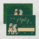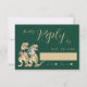 Tarjeta de respuesta de boda con tema de dinosaurios botánicos. Con una divertida novia y novio T-Rex con follaje de eucalipto acuarela, esta tarjeta verde oscuro aporta un toque único y caprichoso a tu día especial. La tipografía de estilo caligrafía moderna es divertida y fácil de personalizar, lo que facilita la adaptación a tu estilo de boda. Diseñado por la talentosa Catherine Sweetman, el arte de acuarela muestra una encantadora mezcla de botánica y amor inspirado en dinosaurios. Perfecta para la recepción de tu boda o cena de ensayo, esta tarjeta de RSVP es parte de un conjunto de boda completo que incluye todo lo que necesitarás para hacer que tu viaje de boda sea tan memorable como tu historia de amor.