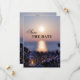 Una romántica boda de invierno Salven la tarjeta Save the Date con una puesta de sol en el océano con una farola festiva con brillantes luces de hadas.