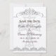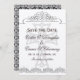 Las bodas temáticas cruzadas, excepto las tarjetas de fecha, presentan un diseño cruzado con bordes caligráficos y múltiples campos de texto que se pueden personalizar con sus datos personales en el frente mientras que la parte posterior tiene un patrón de damasco en negro y marrón.
