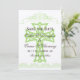 Las bodas temáticas cruzadas, excepto las tarjetas de fecha, presentan un diseño cruzado con bordes caligráficos y múltiples campos de texto que se pueden personalizar con sus datos personales en la parte delantera mientras que la parte posterior tiene un patrón de damasco en verde y marrón.