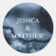 Sencilla y elegante acuarela negra gracias pegatinas con nombres personalizados por sus favores matrimoniales. También están disponibles diseños de correspondencia. © Mini Impresiones Moi
