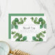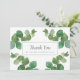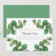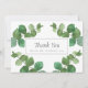 Las hojas frescas y verdes de eucalipto enmarcan tu agradecimiento de boda con el nombre de tu familia en tipografía clásica y elegante.