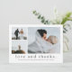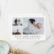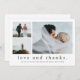Una simple tarjeta de notas de agradecimiento de un boda de collage de fotos de 3 tipos con un sencillo estilo moderno y 3 fotos en la parte delantera. La espalda tiene un mensaje personal de la pareja. Haga clic en el botón de edición para personalizar este diseño con sus fotos y detalles.