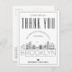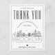 Una buena manera de mostrar su agradecimiento a los huéspedes que han viajado hasta ahora para verle, en la maravillosa ciudad de Brooklyn. Esta tarjeta postal especial de agradecimiento incluye un moderno perfil de la ciudad al estilo deco en la parte delantera de la tarjeta con los nombres de la pareja casada debajo. En el reverso de la postal hay un área para su propio mensaje de agradecimiento. Es un objeto alegre y divertido que pondrá una gran sonrisa en la cara de tus amigos y familia y les indicará que su presencia fue apreciada en tu día especial de matrimonio.