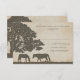Esta tarjeta de boda ecuestre, clásica y elegante, de color marrón y crema beige, presenta dos caballos de pastoreo bajo un roble gigante de abuelo en un paisaje de pastos como el que se encuentra en una antigua plantación o en una granja pura del país. Un diseño muy elegante para cualquier boda o evento al aire libre en un rancho durante la primavera, el verano o el otoño. Busca en mi tienda productos a juego para ir con este diseño de bonito.