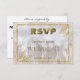 Bonita tarjeta de RSVP con un paisaje bohemio de campo con hojas de castaño doradas y brillantes y confeti.