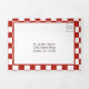 Invitaciones de boda elegantes todo en uno. Envíe toda la tarjeta con toda la información, información de recepción y tarjeta de respuesta postal, pueden cortarla y enviarla de vuelta. El diseño presenta un patrón de picnic de playa a cuadros rojos y blancos y un cangrejo de grabado en madera rojo.