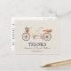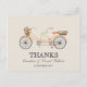 Esta hermosa postal de agradecimiento incluye una bicicleta de pareja llena de flores y el nombre de la novia y del novio y la fecha de boda de tipo moderno. Es la manera perfecta de agradecer a sus amigos/familiares por su presencia/regalos en su boda. También se puede utilizar para varias otras ocasiones. Puede mover o eliminar los elementos/tipos de diseño de acuerdo con su elección/preferencias.