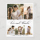 Presupuesto, Moderno, Elegante Boda Script 5 Collage de fotos Asequible Gracias Volante en Blanco y Negro. Plantilla de tarjeta boda elegante y minimalista con cinco (5) collage de fotos en la parte delantera y una (1) foto en el reverso. "Amor y agradecimiento" texto con letra cursiva de caligrafía con letra cursiva con cola batida. Personaliza con tu nombre y mensaje de agradecimiento. Si necesita ayuda o un elemento que coincida, póngase en contacto con el diseñador.