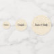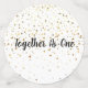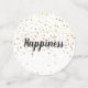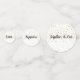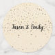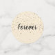 Estas piezas de confeti de mesa son una mezcla de champán y blanco de dos lados con comentarios bien intencionados para la novia y el novio. Gráficos de estrellas pequeñas doradas y de color champán adornan tanto el frente como el reverso. Los textos de las muestras son "Jason & Emily", "felicitaciones", "Felicidad", "Juntos como uno", "Amor", "Para siempre". Personalizar este artículo o compre como está diseñado.