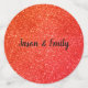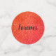 Estas piezas de confeti de mesa son una mezcla de colores vibrantes de doble cara del Naranja Flamingo con comentarios bien intencionados para la novia y el novio. Gráficos de estrellas de color gris pequeño adornan un lado alrededor de los bordes y en el otro lado una representación fotográfica del purpurina Naranja Flamingo. Los textos de las muestras son "Jason & Emily", "felicitaciones", "Felicidad", "Juntos como uno", "Amor", "Para siempre". Personalizar este artículo o compre como está diseñado.
