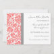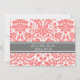 La boda ahorra la tarjeta de invitación de fecha con elegante y contemporáneo naranja de melocotón rosa, gris de carbón oscuro y blanco clásico y vintage patrón de damasco floral. Personalizable con los detalles de su boda, disponibles en una amplia gama de productos bodas a juego. Contáctenos para solicitar un cambio de color o un producto personalizado.