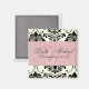 Boda de Damasco con Monograma en Negro y Blanco, Imanes, Imán de fecha de guardado. Se puede agregar un color de fondo. Hermoso tono de rosa, con un toque de púrpura, como acento. Copyright © 2009 PixDezines.com y PixDezines en zazzle.com