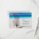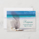 Este diseño romántico muestra una foto de una playa de arena blanca con el océano en hermosos tonos azules. El coral está bien acondicionado con conchas de conchas. Las olas inspiran las olas del agua. Personalice este RSVP con los detalles de su próximo boda. Son ideales para bodas temáticas o de destino.