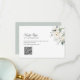 Una tarjeta boda RSVP de código QR con letras negras simples, follaje eucalipto y flores blancas.