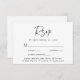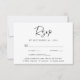 Tarjeta de gabinete RSVP de boda clásica con "Rsvp" en un guión moderno de moda, los detalles del RSVP en una tipografía serif elegante y sus opciones de menú personalizadas. Añade tus nombres y la fecha del boda al dorso.