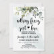 Diseño de boda de fuga con vegetación en acuarela, fondo rosado y letras de caligrafía moderna. El gráfico dice "nada elegante, solo amor" con un corazón en el centro. Para acceder a herramientas de edición avanzadas, vaya a "Personalizar" y luego haga clic en el enlace "haga clic para personalizar aún más".