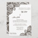 La invitación a la boda vintage muestra una imitación de encaje marrón. Cambie el color de relleno marrón para que coincida con la tarjeta plana con los colores bodas. Recuerde ajustar también el color de la fuente. Para consultas de personalización y diseño, póngase en contacto con https://kbmd3signs.com/contact/.