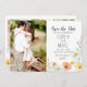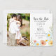 La flor dulce y encantadora salva las tarjetas bodas de dátiles con un aspecto acuarela floral de margaritas amarillas y blancas y flores y verdes bonitos rosas. Añade tu foto favorita al frente y tres más al fondo. La parte posterior de esta flor silvestre, salvo la tarjeta de fecha, también tiene un diseño floral a juego en la parte posterior y espacio para añadir tres de tus fotos favoritas. Es perfecto para anunciar una primavera interior o exterior, o un boda con temática de verano o jardín. Diseñado por Chrissy H. Studios, LLC. Todos Los Derechos Reservados.