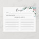 Boda de Flores Silvestres, Tarjeta de Receta Flora