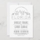 Una invitación nupcial única para un matrimonio que tiene lugar en el hermoso estado de Florida. Esta invitación presenta un ilustracion estilizado del paisaje único de la ciudad con su nombre debajo. A esto le sigue la información del día de la boda en un estilo de línea abierta que coincide. En el reverso de la invitación, un color gris profundo complementa el aspecto y la sensación. Todos los elementos individuales de la tarjeta de invitación están desbloqueados, por lo que puede cambiar o agregar cualquier detalle necesario mediante la función de personalización. Puede agregar una foto al reverso y agregarle un filtro en blanco y negro. Además, puede experimentar con los muchos tipos de papel más gruesos y cortes disponibles. Se encuentran disponibles tarjetas RSVP, bandas del vientre, bolsas de tote y más. ¡Diviértete siendo creativo y hazlo tuyo!