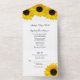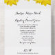 El girasol amarillo desgarró todo en una invitación a la boda y RSVP. Simple invitación de boda diseño de tarjeta RSVP despedazado que incluye un hermoso girasol amarillo sobre un fondo blanco. Amarillo, negro y blanco, esta sencilla invitación es ideal para un boda rústico o otoño.