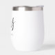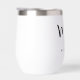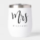 Tumbler de vino térmico con el texto "Mrs." en un elegante tipo de letra de guión de caligrafía, junto con el nombre de abajo.
