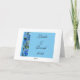 flores de hortensia azules boda, tarjeta de agradecimiento con mensaje y nombres de novia y novio.