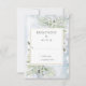 Con eucalipto acuarela, vegetación en el jardín de campo sobre un fondo de copas de nieve en invierno. Esta tarjeta RSVP botánica de moda se puede personalizar con sus detalles especiales de RSVP o agregar información adicional como una elección de menú. Perfecto para bodas, duchas de novias, duchas para bebés, bautizos, fiestas de compromiso, celebraciones de aniversario, graduaciones, cumpleaños y otros eventos especiales de celebración a lo largo del año. Diseñado por Thisisnotme©