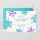 Puede personalizar fácilmente el texto en esta sencilla tarjeta RSVP de boda de invierno, turquesa (verde azulada), violeta, violeta y copos de nieve blancos. El diseño de la tarjeta de respuesta RSVP de copo de nieve de invierno tiene un toque muy moderno con formas audaces y colores elegantes. Violeta morada y azul turquesa (verde azulada). Vea todos los elementos coincidentes de esta colección: