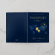 Esta bonita y moderna invitación a la boda está diseñada para parecerse a un pasaporte, con un mapa del mundo y un escudo monograma de Relieve metalizado dorado con dos estrellas del mar en la portada. El diseño inspirado en el pasaporte es perfecto para una boda de destino, un boda tropical de la playa o un boda con temática de aventura. Esta invitación es perfecta para las parejas que quieren darle a su boda un toque único y memorable.