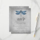 Envíe a los huéspedes una tarjeta RSVP de la libélula guiada con su invitación. El diseño de la tarjeta de respuesta incluye una libélula con guijarros de piedra y vitalidad contra un fondo vintage a rayas angustiadas. Personalice con la fecha de respuesta y las opciones de menú. También hay material de boda adicional disponible con este diseño.
